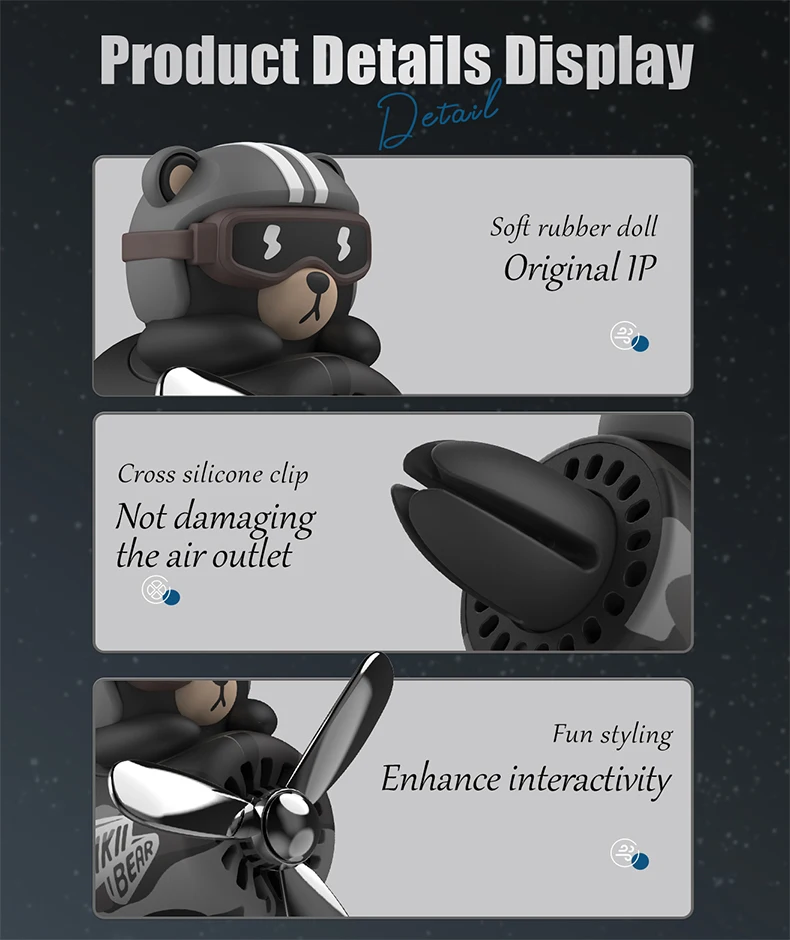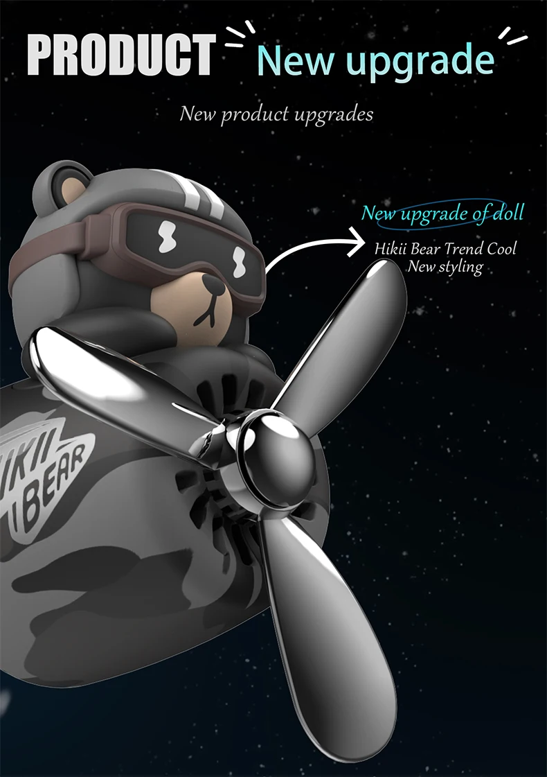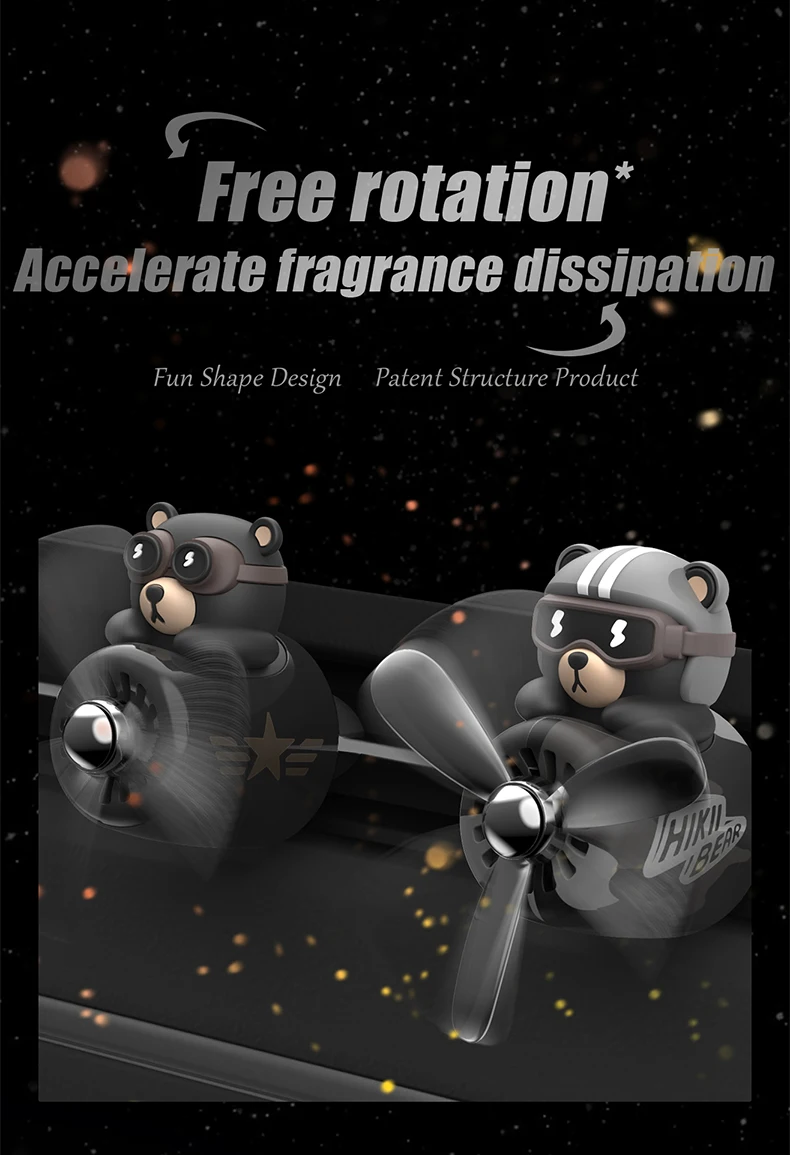 Cool bear car air freshener pilot rotating fan vent clip perfume diffuser auto accsesories decoration fragrance windmill aroma